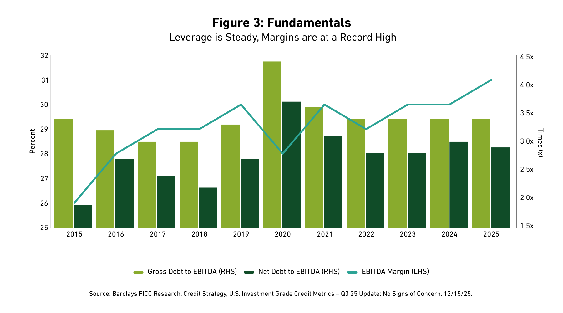 [26] Barclays FICC Research, Credit Research, U.S. Investment Grade Credit Metrics Q3 Update: No Signs of Concern, December 15, 2025.